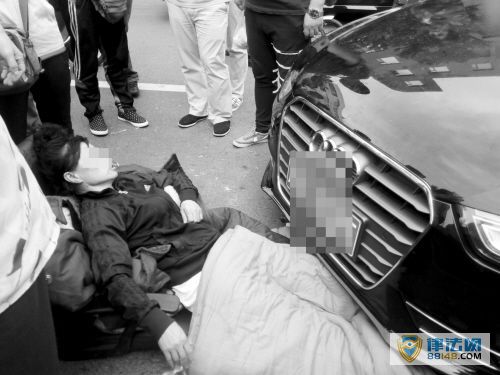 8日下午3时左右,我从房地产大厦向北过马路,被东侧开过来的这辆奥迪车撞倒了。给我的腿撞了,脚也轧了,给我撞哭了。把我撞了后,一位老大爷对车主说:你把人撞了怎么还在车里坐着?车主下车后说:“我全险!你自己挂120,自己看去,看完找保险公司,别找我。”