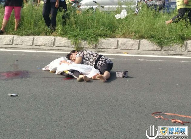 附近还散落着女孩的书包。而肇事车则停在一旁,车头位置已经凹陷,前轮已经瘪掉,被撞的电动自行车已经被卷入车底。两个女生的家属痛苦地哭着。其中一个(罗同学)女孩的母亲抱着孩子的遗体,不忍放手,身上都沾满了血迹,不断地哭喊着:我要我的宝宝,把我的孩子还给我。