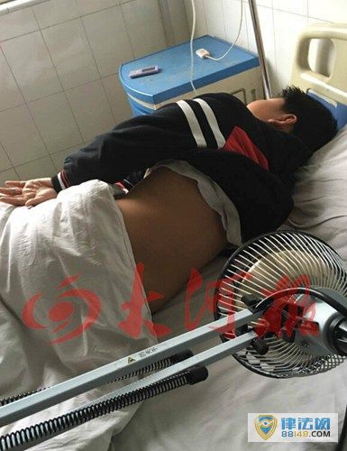 今天上午,记者在宝丰县人民医院骨科,见到了停课正躺在床上接受电烤治疗的被打9岁小男孩韩雨轩。