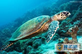 玳瑁是一种海龟,生活在浅水礁湖和珊瑚礁区,以海绵、水母等生物为食。