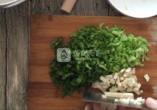 6. 把青菜梗子和豆干稍微剁一下。