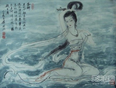 曹丕娶得甄氏后,起先对其很宠爱,生育了后来的魏明帝曹睿和东乡公主。称帝后,则日渐冷落甄氏。不久,甄氏便因曹丕新纳宠妃栽赃诬陷其埋木偶诅咒曹丕而被赐死。甄氏死后,有一次曹植入朝进宫,曹丕忽动恻隐之心,将甄氏使用过的一个盘金镶玉枕头赐给他。曹植睹物思人,泪如泉涌。归途中经过洛水,夜宿舟中,取枕而眠,恍惚间遥见甄氏凌波御风而来。梦醒后,便彻夜写下那传世名赋--《感甄赋》,“翩若惊鸿,婉若游龙。荣曜秋菊,华茂春松”,抒发蕴积已久的爱慕之意。后来魏明帝将叔叔的这首《感甄赋》改名为《洛神赋》,大概是觉得原赋名太过直白,难免让世人联想起曹植与甄氏间的叔嫂恋情。