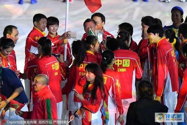 丁宁夺得乒乓球女单和团体两枚金牌,成为首位担任中国代表团旗手的乒乓球运动员。刚刚赢得奥运会金牌的中国女排姑娘们也参加了闭幕式,她们拿着手机不停的合影、自拍。面对着摄像机,中国运动员们快乐的打着招呼,甚至做出了飞吻。伸舌头的动作。来到指定位置之后,女排姑娘们抢着与旗手丁宁一起合影,定格着这难忘的一刻。