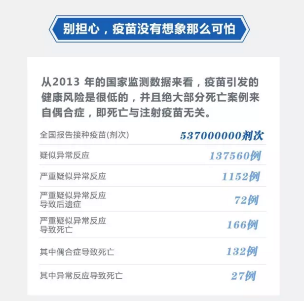 根据你微信公众号"全民较真"(ID:Fact_Check)的图表,疫苗引发的健康风险是很低的,导致后遗症或死亡的,更是少之又少。