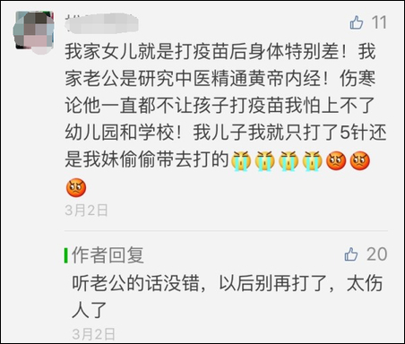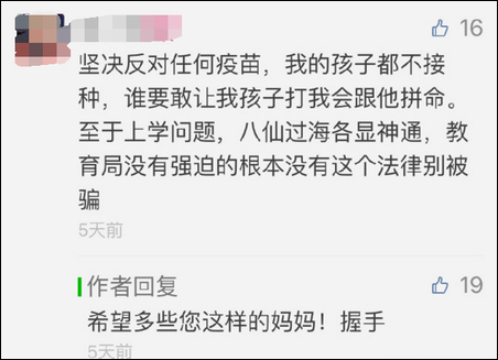 群里全是嚷嚷着不给孩子打疫苗的家长,他们对作者感恩戴德,表示要把身边的亲朋好友也拉进来……