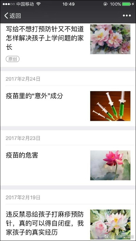 她不仅在公号写文章宣传"疫苗有害":