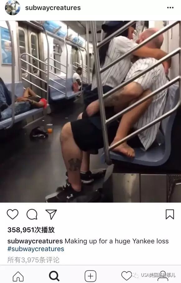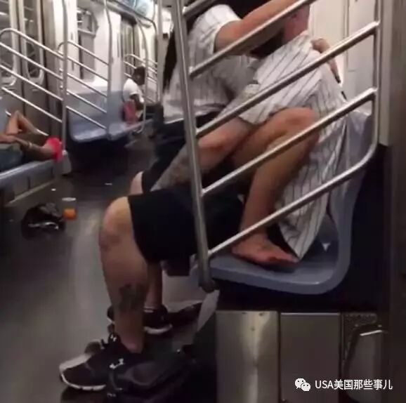 比赛结束后,穿着洋基队球服的一男一女在5号线地铁上直接啪了起来...
