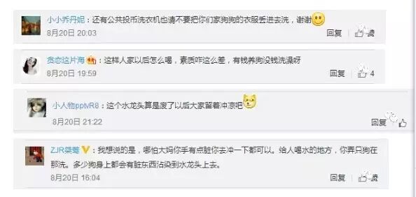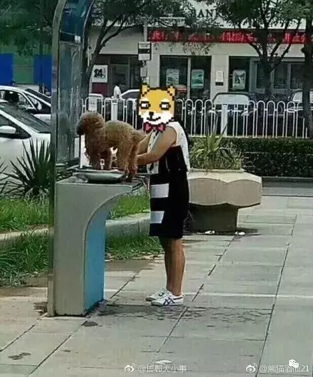 8月19日当天,网友@熊猫酒仙21爆料,邯郸市一大妈在公共直饮水机上给狗洗澡。