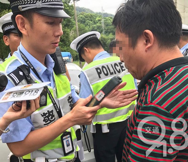 白警官说到,"用力吹,持续吹,吹5-6秒, 你吹气这个机器才会响,骗不过的。"