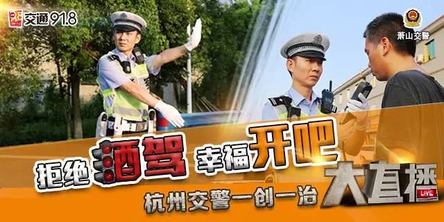 今天中午12:00,杭州交警萧山大队联合交通91.8在墅藏线进化镇华丰东路口,开展了"拒绝酒驾,幸福开吧"杭州交警"一创一治"系列行动的开吧视频大直播!具体现场情况如何?点击图片回播!