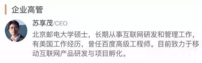同时在一份招聘启事中,我们得知曳尾科技已获得天使投资。而苏享茂本人的简历则注明其毕业于北京邮电大学,曾就职于百度。在这家公司的招聘页面上,曳尾科技的员工人数不到15人。人数虽然不多,但公司已经开始正常化运营。