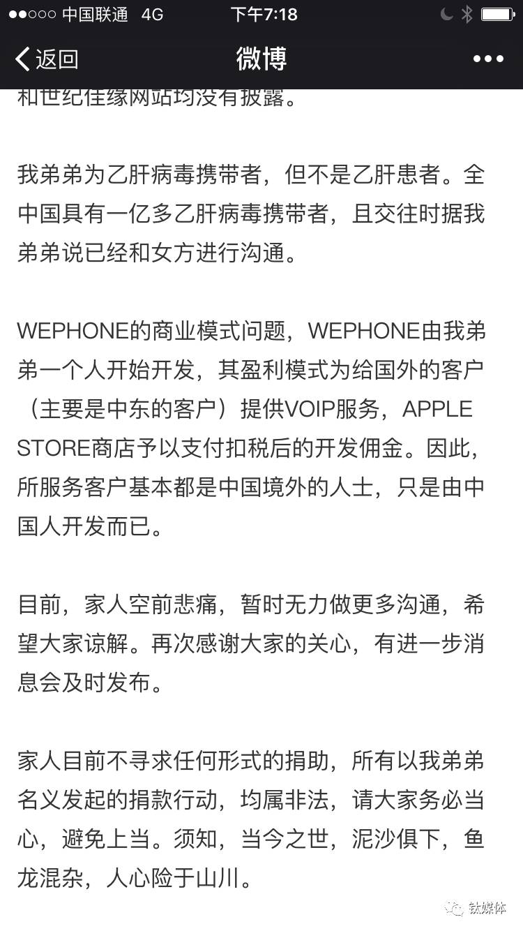 世纪佳缘回应:经核实,wephone已故创始人苏享茂及前妻翟欣欣系世纪佳缘会员,并完成实名认证。世纪佳缘会密切关注事态进展,并配合相关部门进行调查取证工作。