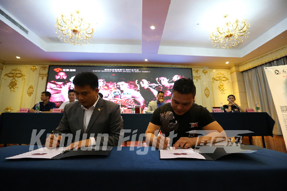 中国网周口讯2015年9月3日,当今中国最具实力、人气与话题性的职业搏击赛事领航者《启辰·昆仑决》时隔一年,即将再次走进河南周口,由永利名车、华夏驾校、周口林海置业国际建材城共同打造的一场群星荟萃、爆烈震撼的《昆仑决周口站·泰拳之夜》赛事将于此地全面打响。9月3日昆仑决在共和国庆祝70周年的盛大阅兵式当天带着无限的荣光与自豪召开了昆仑决周口站的发布会,泰拳王巴猜、肯姆,中国选手王伟豪、郑召玉、熊竞楠、闫西波等名将逐一亮相。