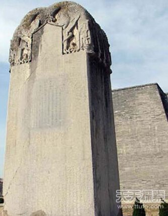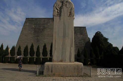 乾陵,在陕西乾县城北梁山上。陵前有两座高达6.3米的石碑,一座为《述圣纪》碑,是武则天为唐高宗所立;另一座为唐人为武则天而立,因通体无字,故被后人称作“无字碑”。中国帝后陵寝向来没有立碑之例。