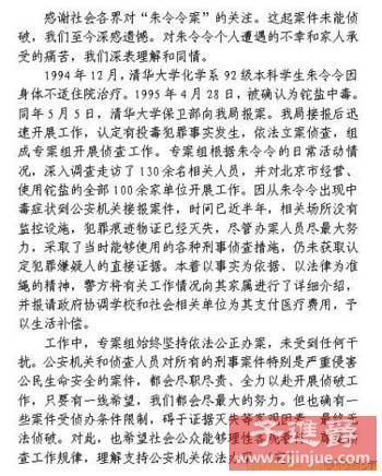 警方再确认清华朱令铊中毒案无法侦破,舍友集体投毒?